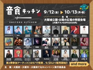 2025.09.10BIGMAMA#event柿沼広也・東出真緒、音色キッチンの参加が決定!今週末より開催の 大阪来てな!キャンペーン『音食キッチン』前回に引き続き、柿沼広也 と 東出真緒 が参加させていただきます9/12(金)~10/13(月・祝)11:00〜22:00(L.O.21:30)大阪城公園・太陽の広場の特設会場(大阪グルメEXPO2025内)https://funky802.com/kitchen/