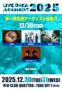 渋谷CLUB QUATTRO/TAKE OFF 7 にて開催の「LIVE DI:GA JUDGEMENT 2025」へ出演が決まりました。