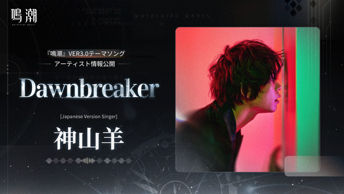 このたび、ミュージシャン 神山羊 が、オープンワールドアクションRPG 『鳴潮(メイチョウ)』Ver.3.0 のテーマソング 『Dawnbreaker』 に 歌唱参加 することが決定しました。