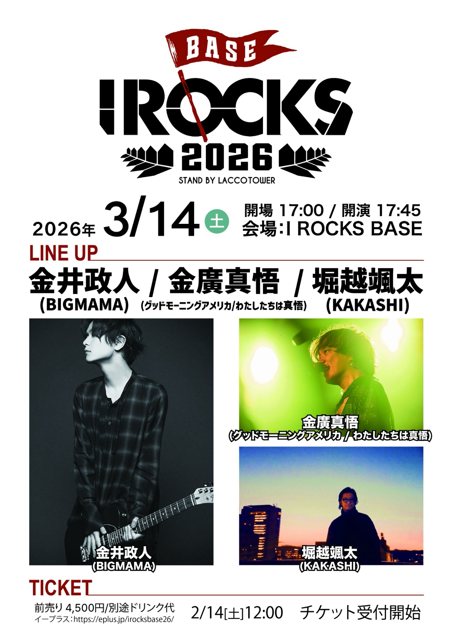 3月14日(土)開催の I ROCKS 2026[BASE編] に金井政人の出演が決まりました